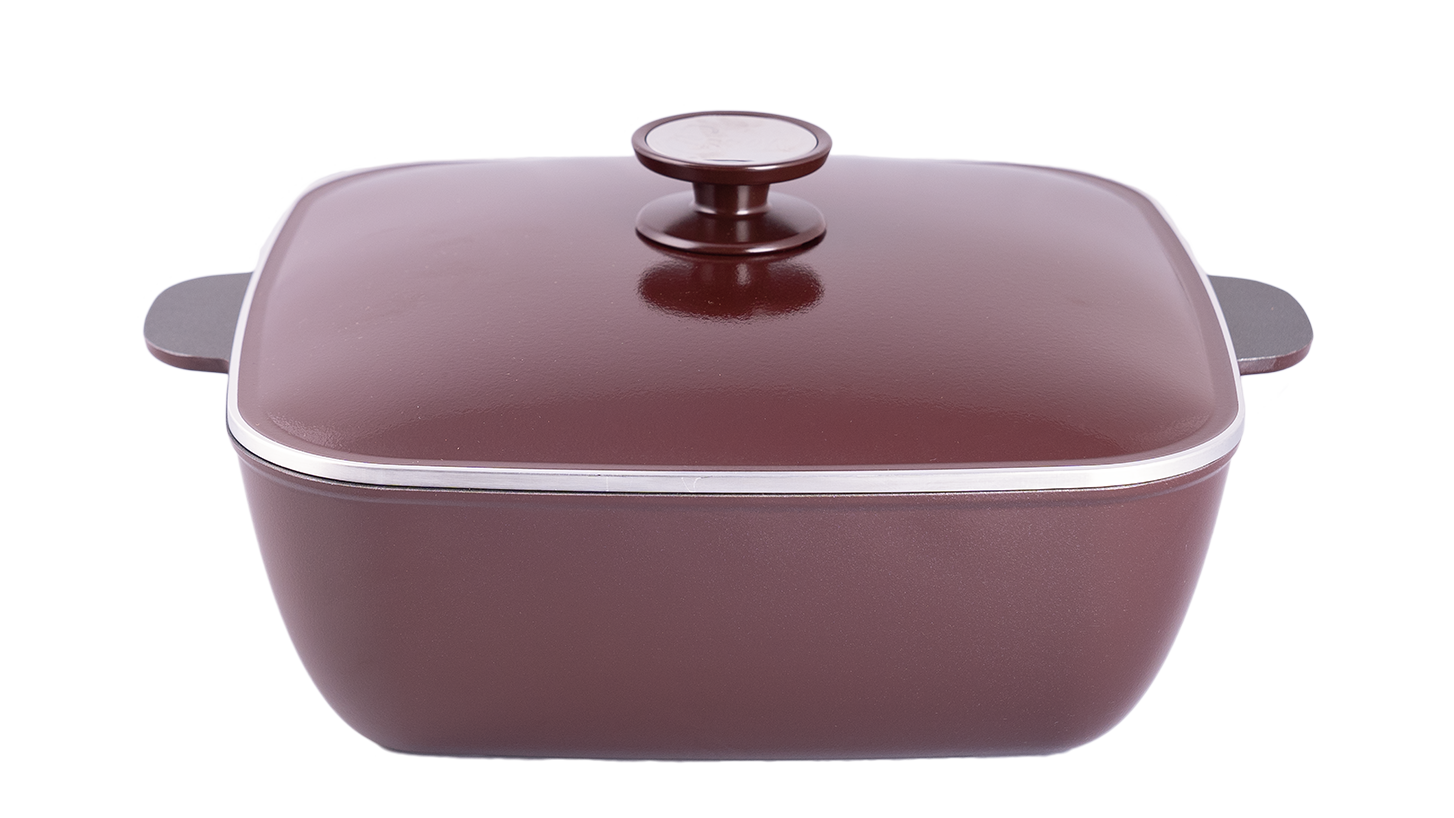 Cuerpo y tapa recubiertos exteriormente con esmalte vitro porcelanizado Cherry, interior antiadherente