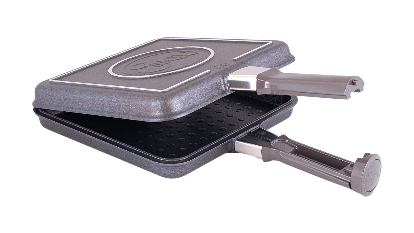 Además, posee un mango con cierre traba dial, que logra un cierre seguro y permite realizar un giro "flip" firme.  La innovación en su sistema de bisagras, permite una mayor facilidad en el desmolde y la limpieza.