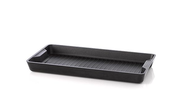 Pieza de diseño vanguardista en el territorio de los grills y biferas, con gran capacidad de cocción gracias a su superficie longilínea cubriendo dos hornallas de la cocina.